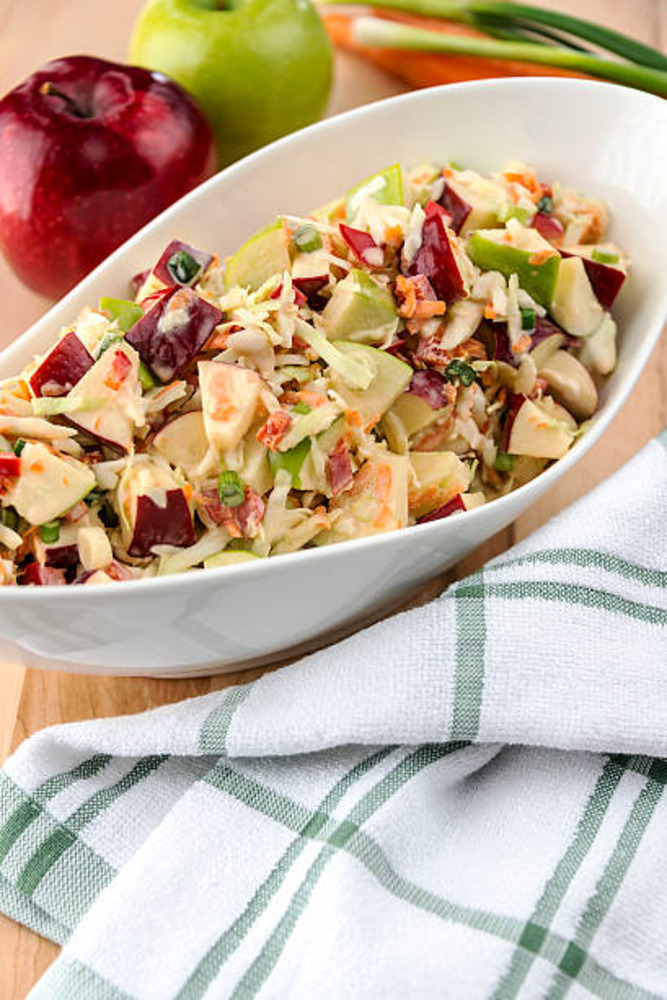 • Cover the bowl with plastic wrap and refrigerate for at least 30 minutes before serving, allowing the flavors to meld and the salad to chill. Enjoy this refreshing and crunchy apple salad!