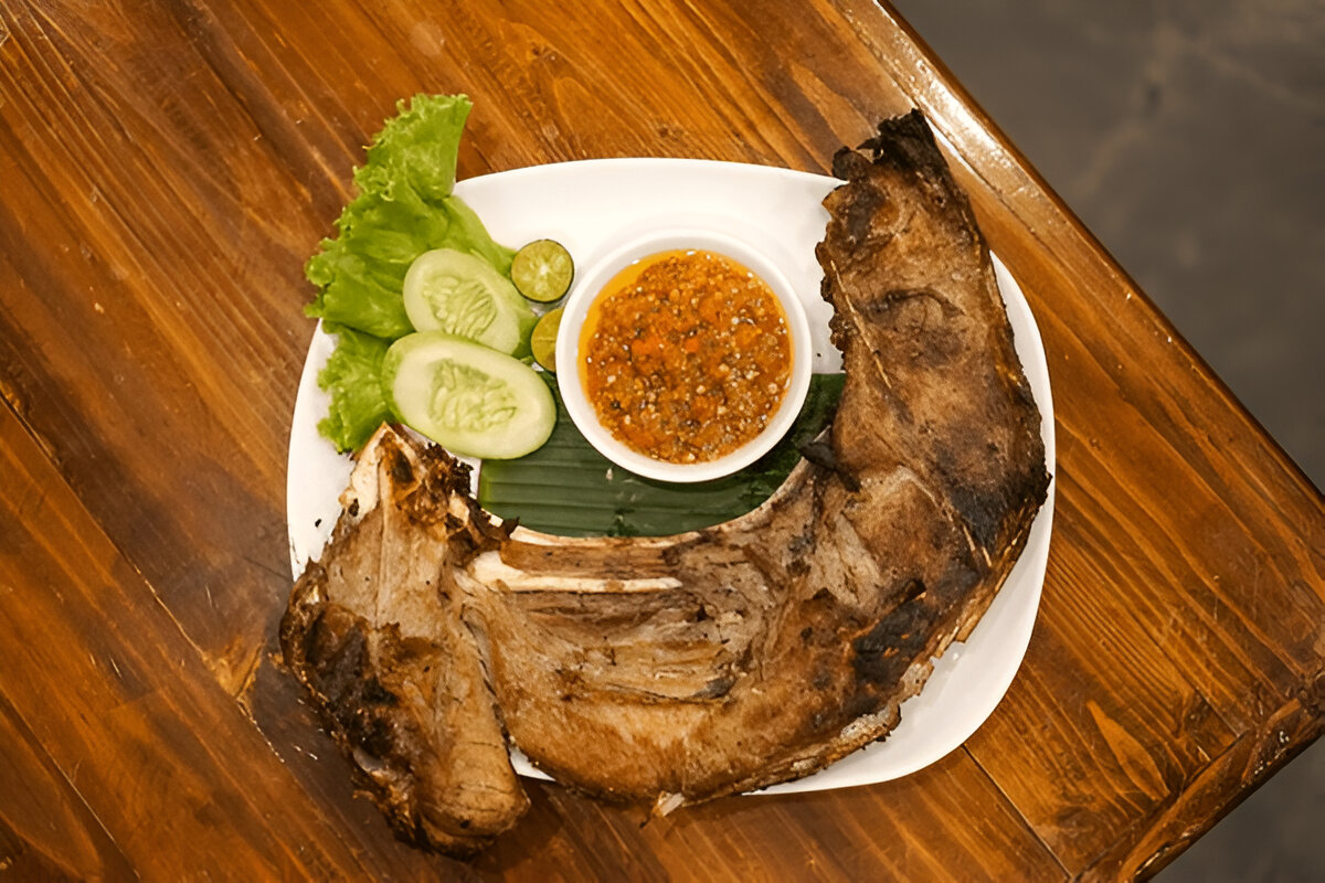 - Once done, transfer the grilled tuna jaw to a serving plate. Serve it with a zesty dipping sauce made by combining soy sauce, lime juice, and chopped chili.